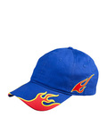 - Embroidered flames on side panels