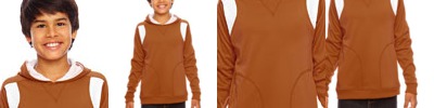 BODY: 7.5 oz., 100% polyester interlock double knit; LINING: 100% polyester tricot large hole mesh lining in hood; Peached finish on interior for added comfort; Contrast inserts at front shoulders; Zippered front welt pockets; No drawcord; 2" 1x1 rib-knit hem and cuffs;